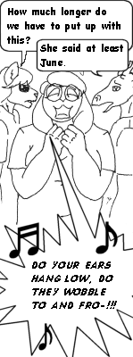So, I finally came up with an idea... I think I'm spending too much time contemplating those ears! Oh, and a little unsubtle foreshadowing! I'm also trying something as far as a smaller format. I haven't liked much how the comic looks on regular computer screens. ~Kathi |